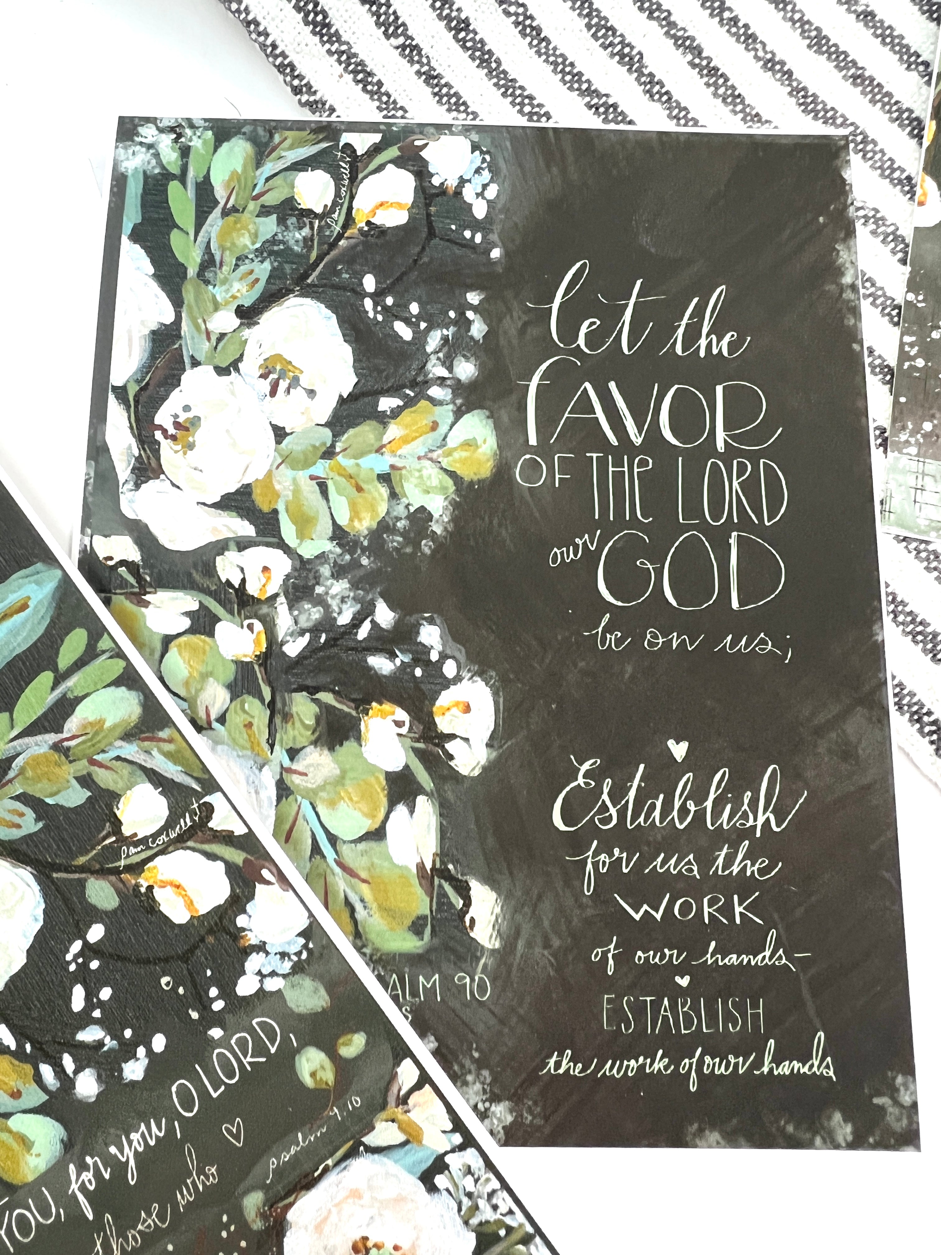 Note Cards: Cards measure 4.25 x5.5 inches and come in singles or a pack of four. Notecards are blank on the inside and come with blank white envelopes.
