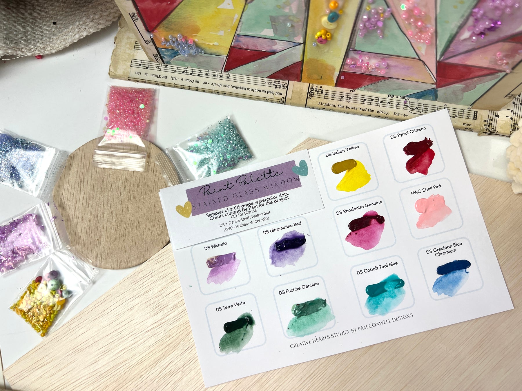 We’ll begin by designing windowpanes on watercolor paper and learning how to create a translucent stained-glass effect using beautiful spring shades from Daniel Smith watercolors. I’ll show you how to layer color gently, so the light seems to shine through your panes.